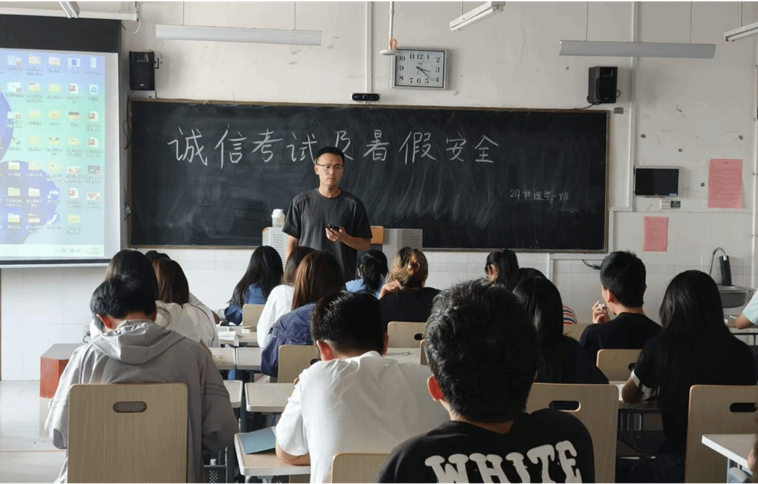 为切实增强学生的诚信意识与安全防范能力,营造风清气正的考试环境和平安有序的假期氛围,6月30日,beat365平台官方网站组织各班级在综合实验楼W楼开展诚信考试及暑假安全教育主题班会。