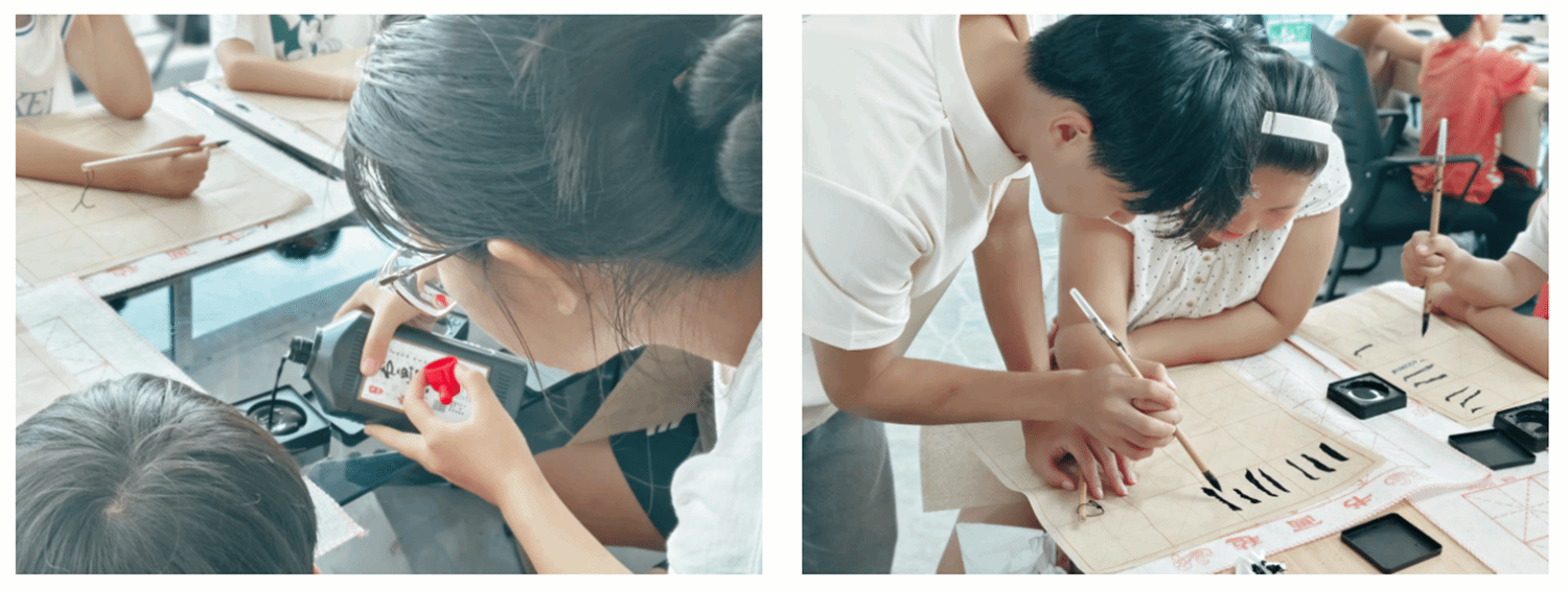 午后阳光正好,书法课接续而来。上节课习得 “一横” 韵味,这节“王彬至老师”手把手教 “一竖” 奥秘。从握笔姿势到起承转折,从把控笔力到领会神韵,孩子们专注练习,一横一竖间,慢慢掌握毛笔精髓,传统文化的魅力,在墨香与笔触中肆意流淌,书写功底与文化感知同步进阶。
