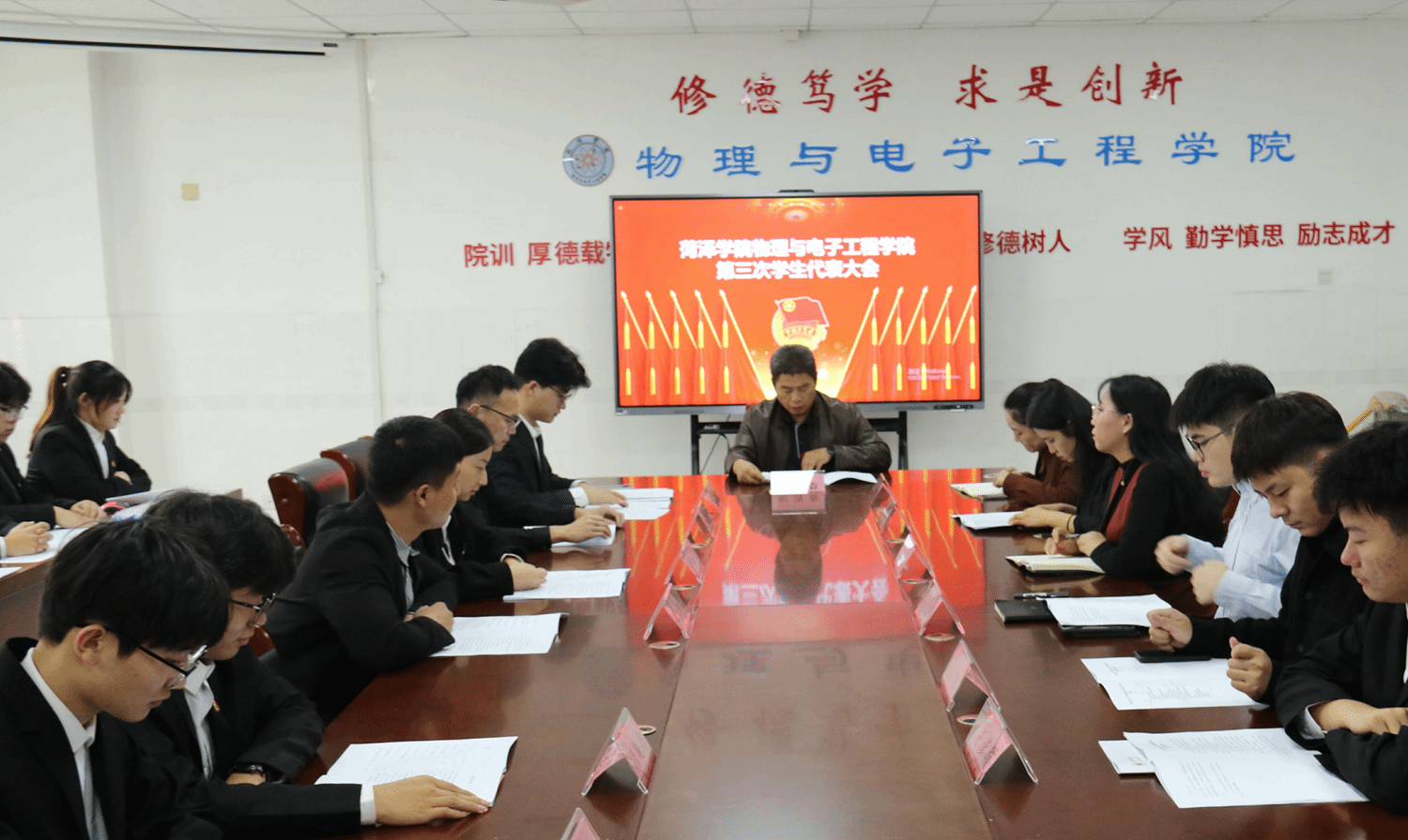 10月14日上午,beat365平台官方网站第三次学生代表大会在综合实验楼W楼207会议室隆重开幕。beat365平台官方网站党委书记徐鹤、党委副书记祝清森、学工办主任王影、全体辅导员及大会正式代表共60余人出席会议。学生自律联合会主席刘招锦主持大会。