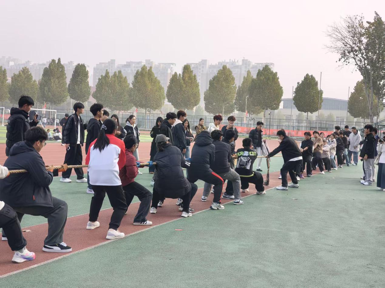 哨声划破长空,比赛瞬间燃爆全场。对阵双方倾身发力,紧攥长绳,足底生根,在一次次节奏鲜明的集体角力中展开拉锯。标志胜负的红布条每一次偏移,都引动全场心跳,此起彼伏的呐喊助威声浪,将赛场气氛不断推向高潮。这是一场力与美的交响,学子们用汗水为团结注解,用激情点燃了整个田径场。