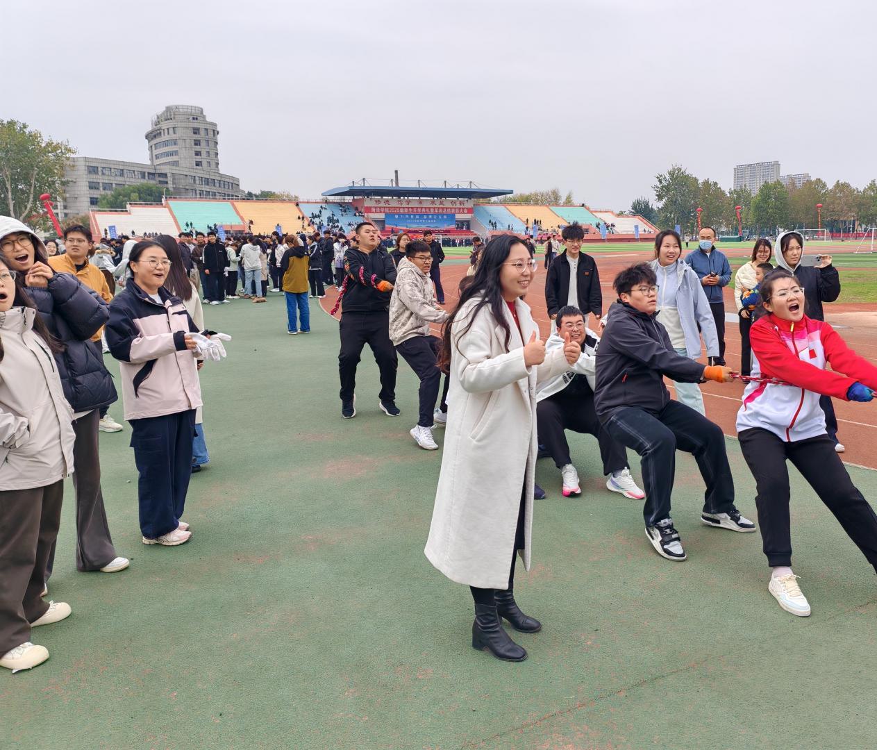 为积极响应体育强国建设号召,营造活力向上的校园体育氛围,10月31日下午,beat365平台官方网站2025年“凝心聚力,力拔山河”拔河比赛决赛在田径场圆满落幕。本次赛事由校团委策划组织,beat365平台官方网站团委具体执行。经过初赛角逐,8支队伍进入决赛,决赛现场气氛热烈,各代表队展现了卓越的团队精神和拼搏风貌。活动由beat365平台官方网站党委副书记祝清森主持。