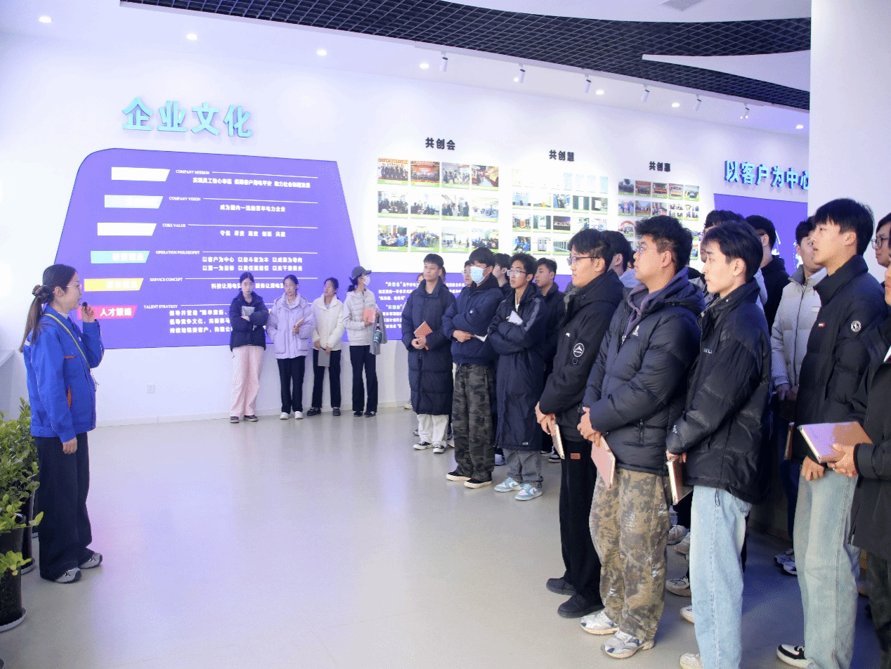 见习活动在企业技术闫总工的欢迎致辞中拉开序幕。接着在集团综合部贺经理、运维事业部王经理、成套事业部孟主管及其他企业工程师的引导下,学生们先后参观了智能运维监控中心及电力工程展示区、光储充一体化示范站、高低压成套设备生产车间,深刻理解了企业秉持“以客户为中心”的核心价值追求、“科技让用电更安全,服务让用电更放心”的服务理念等企业文化内涵;真正领会了充电桩智能数字化箱变的工作原理、技术优势及市场应用前景;近距离观摩了KYN28A-12高压柜、MNS低压柜等核心产品的生产流程、核心组件及柜内接线逻辑结构;同时,也使学子们亲眼见证了电气设备从零部件加工到整机设备调试的全链条工艺。