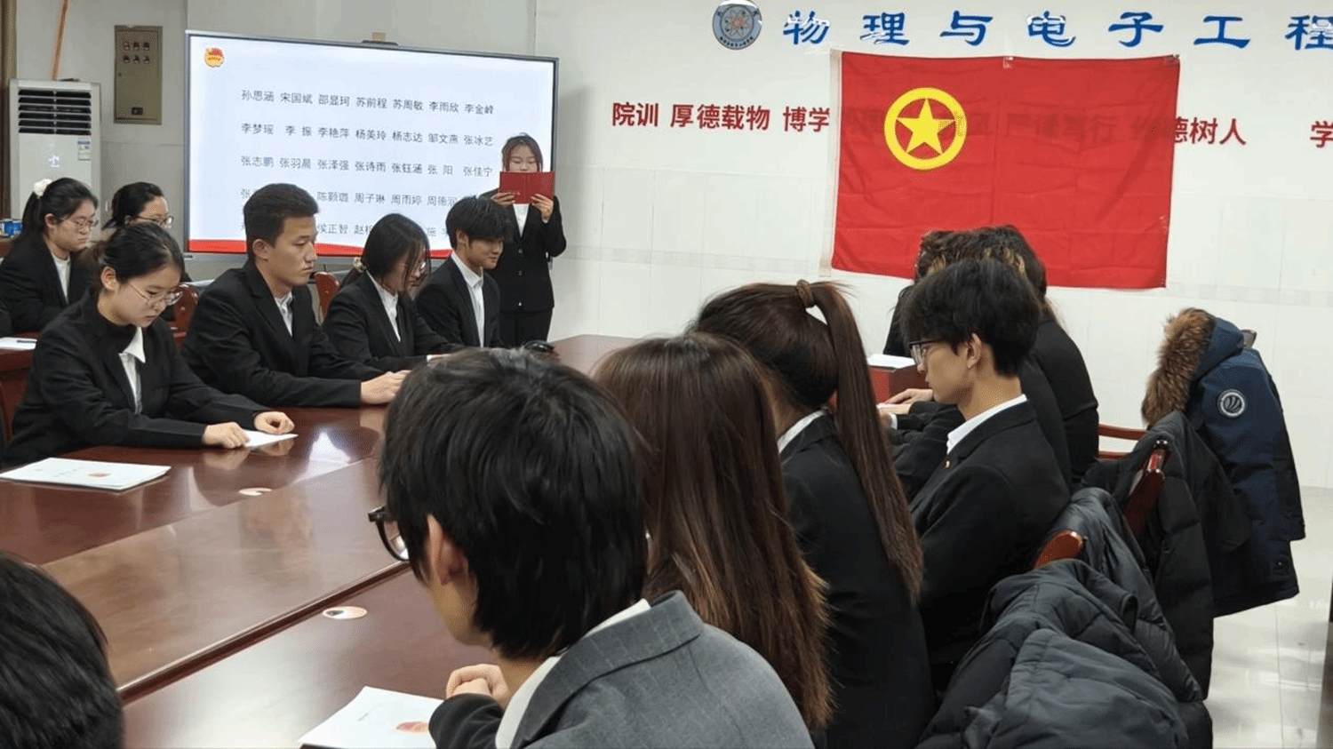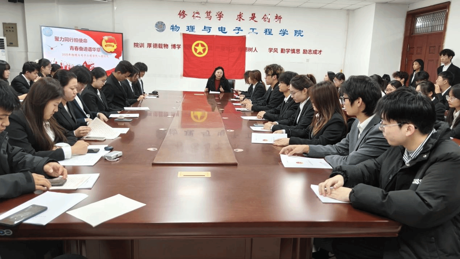 为深入学习贯彻习近平新时代中国特色社会主义思想,进一步增强团员青年的使命感与责任感,激发各级团组织的青春活力,12月11日晚,beat365平台官方网站在综合实验楼W207会议室举行2025年下半年新发展团员入团仪式。beat365平台官方网站团委老师许莉、学生干部代表以及新发展团员参与此次活动。