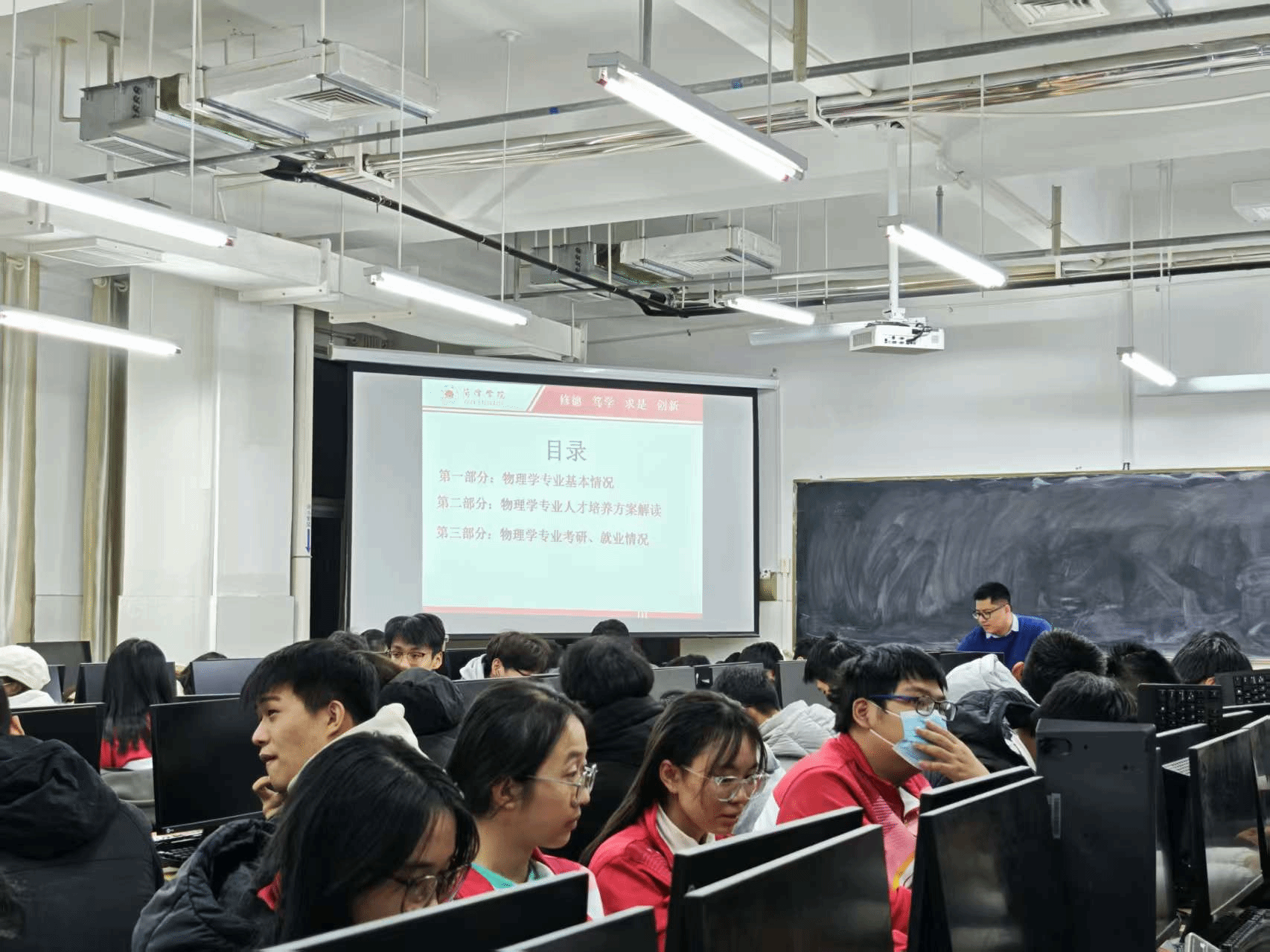 为帮助2025级物理学专业学生精准把握人才培养方案核心要义,明确学业目标与发展路径,12月11日,beat365平台官方网站在综合实验楼W406召开人才培养方案解读讨论会。物理学专业负责人李玉山老师走进2025级物理学一班和二班,与同学们面对面开展交流讨论活动。