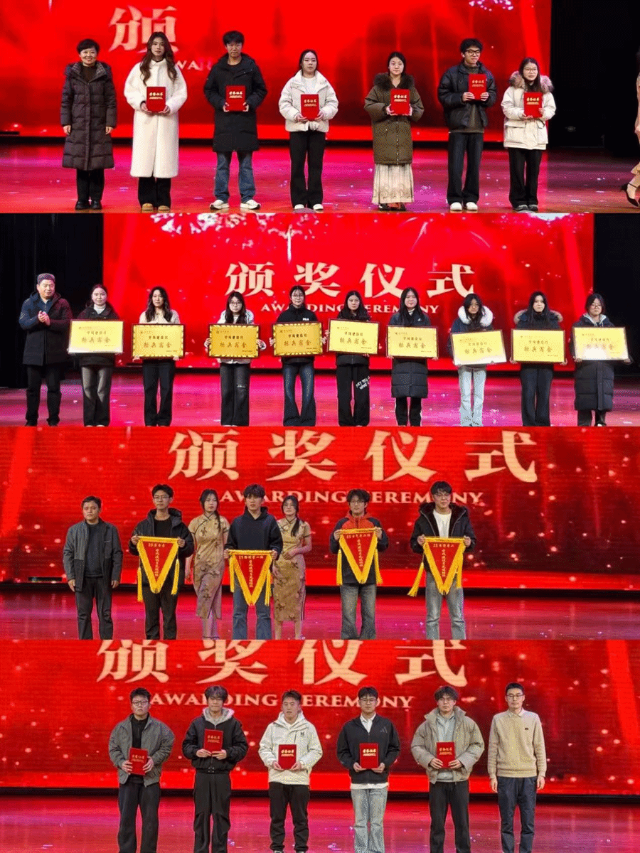 晚会中场的颁奖环节庄重而热烈,在师生们的注目与掌声中,各位老师依次为获奖集体与个人颁奖。“学生优秀代表”在学业成绩与综合素质等方面表现突出,成为物电学子的榜样;“优秀班级”学风严谨、团结进取,体现了集体的凝聚力与向心力;“优秀宿舍”则以和谐的氛围、整洁的环境与良好的学风荣获表彰;“越野赛优秀代表”更以坚韧不拔、永不言弃的体育精神,赢得了全场的热烈掌声。这些荣誉不仅是对同学们过往努力的认可,更是对未来继续奋进的鞭策。