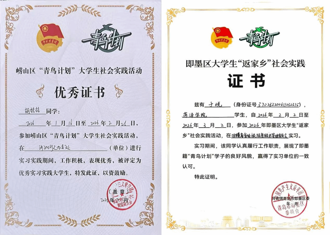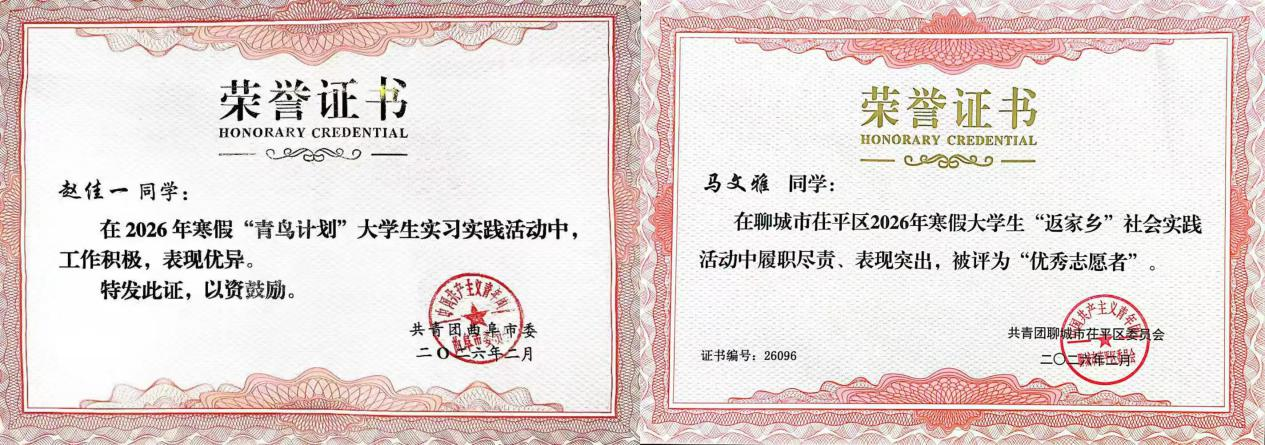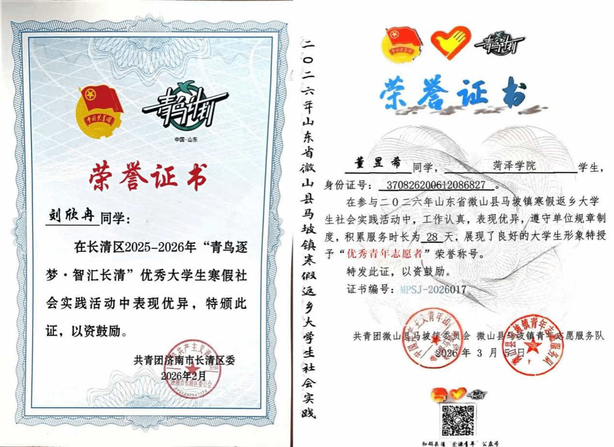 实践期间,beat365平台官方网站学子怀揣着“热爱家乡、回馈家乡、投身家乡”的理想信念,积极投身于“青鸟计划”社会实践活动。其中,2025级物理学二班谷朵荣获表扬信;2025级物理学二班杨盼盼荣获感谢信;2025级物理学一班赵佳一、赵若暄,2025级物理学二班马文雅、董昱希,2024级物理学一班徐祺祺,2025级应用电子技术胡喆喆,2025级电子信息科学与技术二班于悦,2024级电气自动化技术刘欣冉荣获荣誉证书;2023级物理学二班郭本豪,2025级物理学二班王佳怡、谷朵、马文雅,2025级物理学一班李艺辉,2025级电子信息科学与技术二班于悦荣获实践活动证明。
