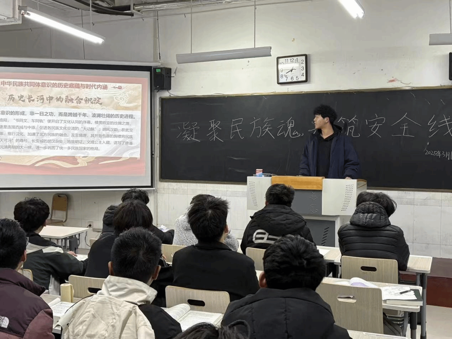 活动伊始,主讲人围绕共同体意识的基本内涵与核心要义、时代背景与重大意义进行了深入解读,重点剖析了抵御宗教向校园渗透的重要性,引导同学们提升防范能力,自觉抵制不良思想侵蚀。讲座内容层层递进,同学们认真聆听、积极思考,深刻领会了休戚与共、荣辱与共、生死与共、命运与共的民族共同体理念。此次活动不仅明晰了时代价值,更增强了同学们的民族自豪感、归属感与凝聚力,为构建和谐稳定的校园环境奠定了坚实的思想基础。
