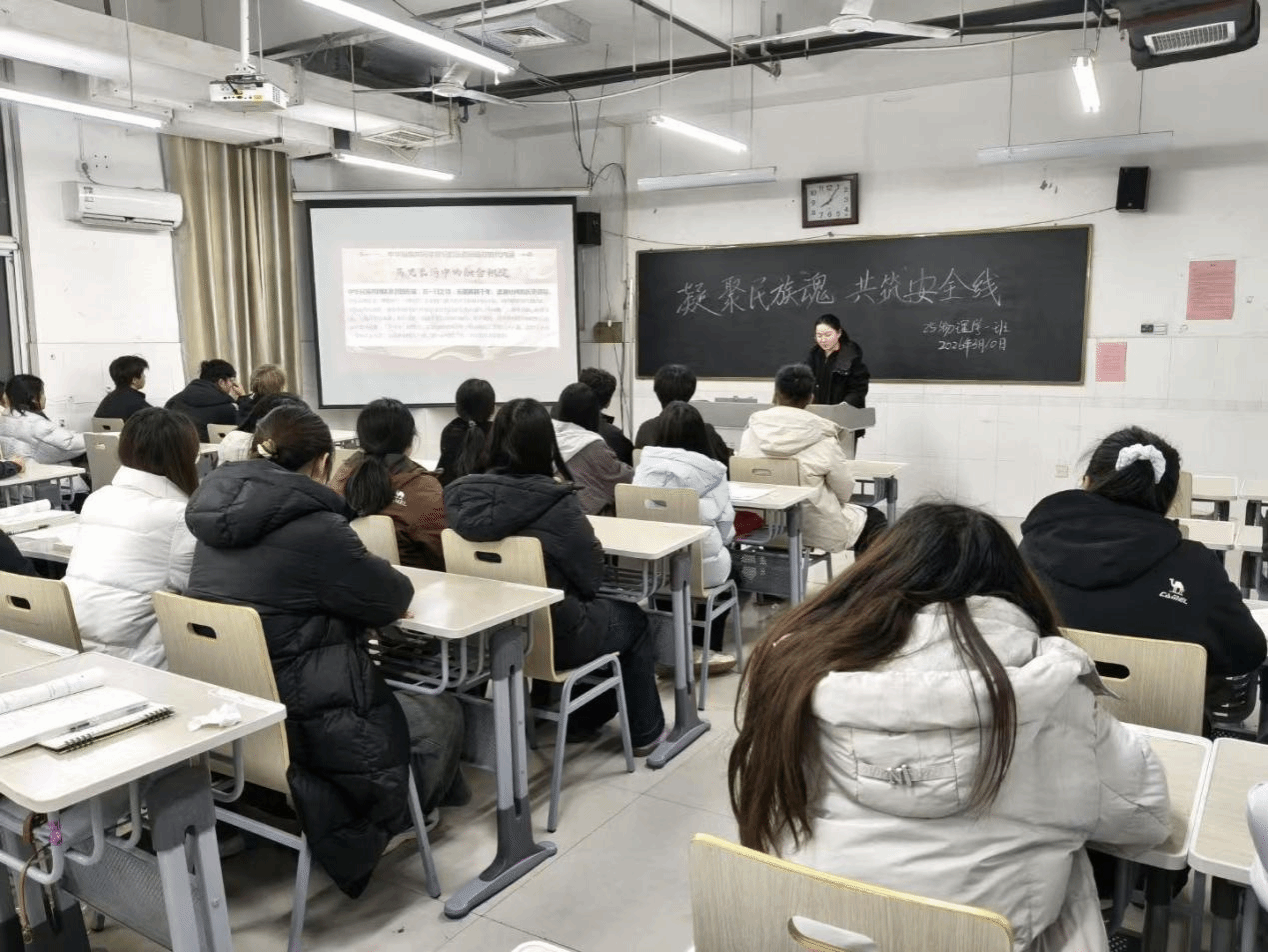 为深入学习贯彻习近平总书记关于加强和改进民族工作的重要思想,铸牢中华民族共同体意识,防范宗教的渗透,强化学生校园安全与法治意识,3月10日,beat365平台官方网站在综合实验楼W楼5楼各班教室开展“凝聚民族魂,共筑安全线”主题讲座活动。