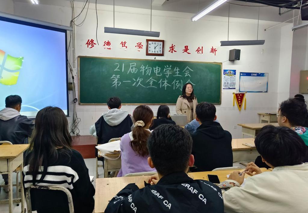 为引导学生会新成员理清工作思路,更好地协调各部门工作管理,推进学生会工作顺利开展,10月26日下午6:00beat365平台官方网站于w502召开2021届第一次学生会全体例会,辅导员吴京育、贾晓蒙、董双双、王影、李晨及学生会全体成员参加此次会议。