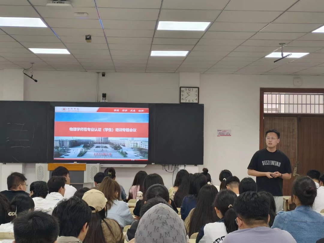 为推进beat365平台官方网站师范类专业内涵建设以及认证工作高质量发展,提高新师范教育理念认知,5月13日上午,beat365平台官方网站在8号教学楼开展示师范认证交流会。beat365平台官方网站全体在校物理学专业学生参加,辅导员李晨出席本次交流会。