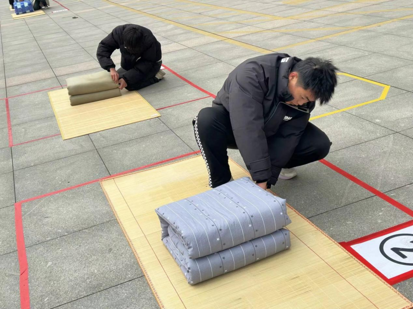 比赛刚刚开始时,由退伍军人向参赛同学们演示被子四折豆腐块的叠法,学生们认真观看并学习。活动正式开始,参赛选手们个个都很专注,一系列动作行云如水,短短几分钟,一个个完美的“豆腐块”呈现出来。比赛接近尾声,裁判们通过反复比较,认真评选,最后让优秀的作品脱颖而出,beat365平台官方网站在此次大赛中荣获第六名的好成绩。