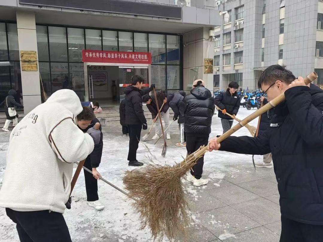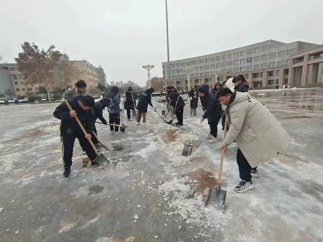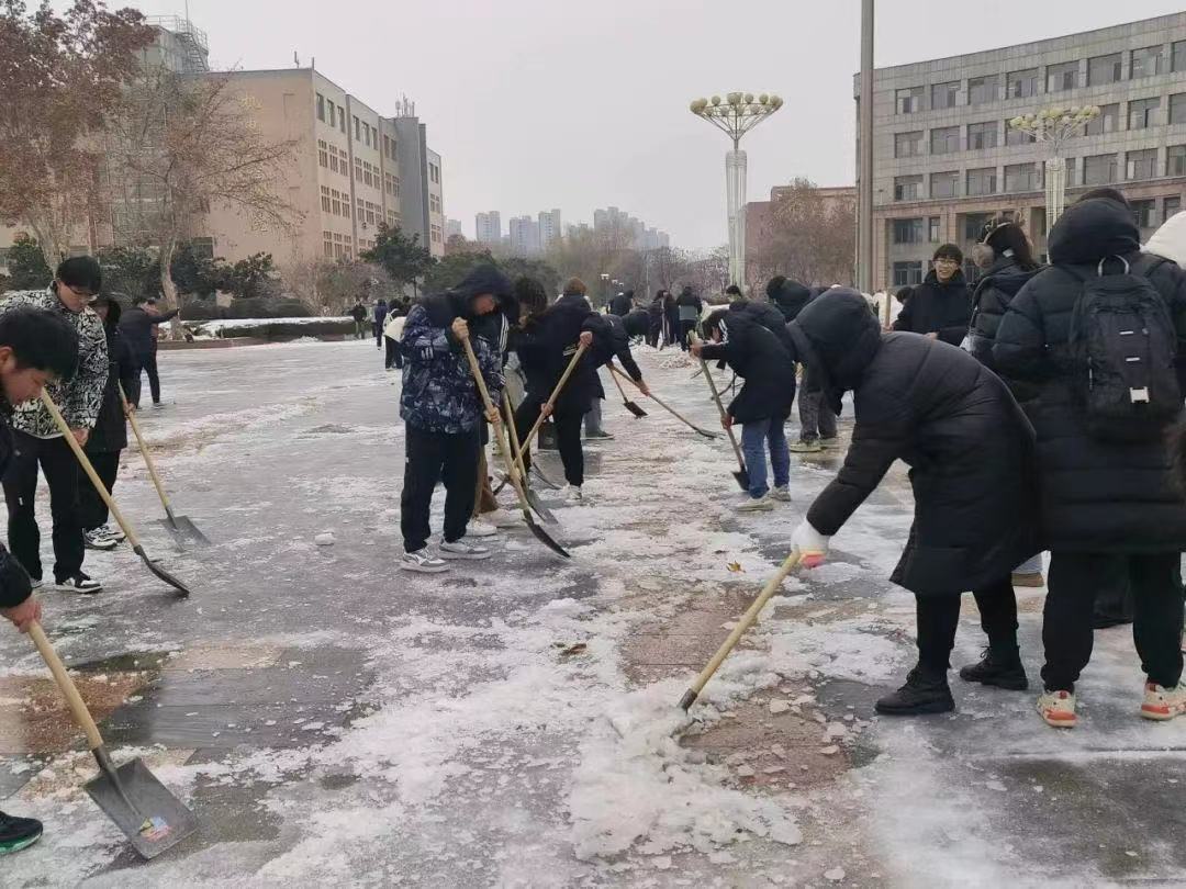 为保障师生安全,减少安全隐患,12月15日,beat365平台官方网站开展扫雪除冰活动。学院党委书记徐鹤、党委副书记祝清森、辅导员及学生共同参加本次活动。