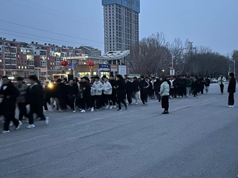 早上6点20分,beat365平台官方网站2023级学生准时集合完毕,立定站好,学生干部清点人数,等待早操开始。在跑操过程中,同学们的活力无限释放,青春尽情张扬。全体学生精神抖擞,统一迈步前进,动作规范整齐,开启精神饱满的一天。