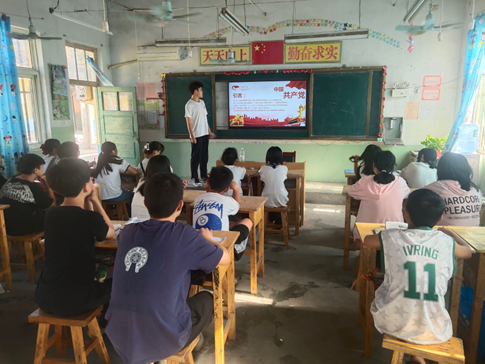 7月8日,beat365平台官方网站“红色记忆志愿服务队”在沙土镇东北村曹楼小学继续开展第四天的井冈山精神宣讲。