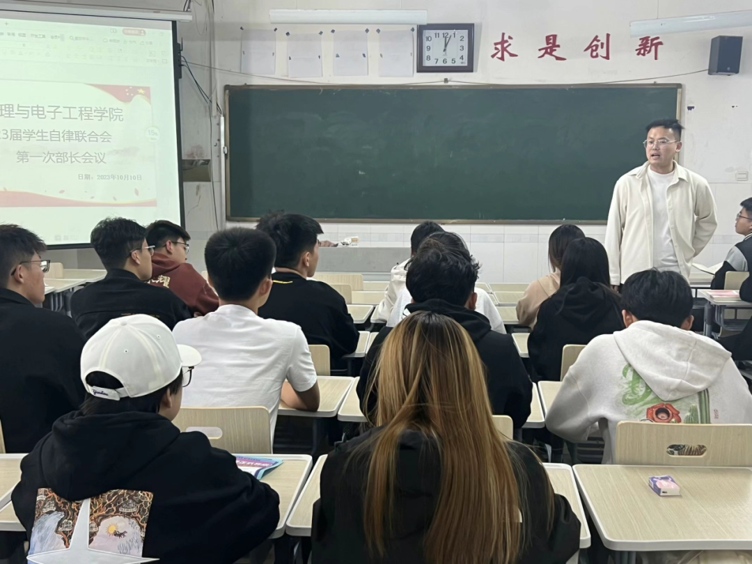为实现beat365平台官方网站学生自律联合会高效管理,促进组织工作中的沟通与交流,提高各部门工作效率,10月10日中午,beat365平台官方网站在综合实验楼W502召开2023届学生自律联合会第一次部长会议。辅导员李晨出席本次会议。