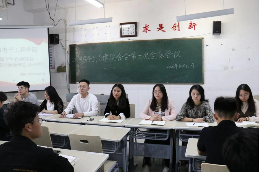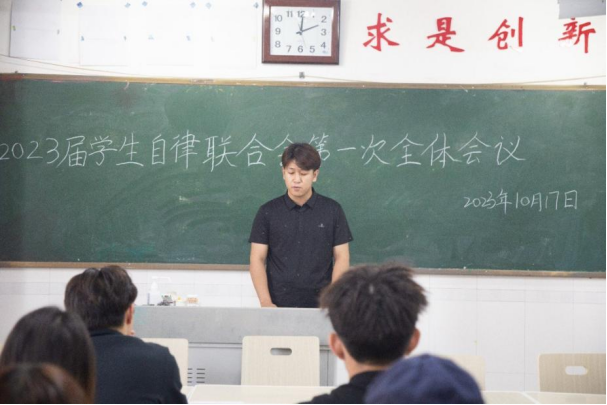 会上,主席团及各部部长详细汇报了工作规划,帮助各部门成员找好定位和方向。辅导员李晨在讲话中对一年内各部门的工作进行全面回顾和总结,详细地讲解了如何平衡好工作和学习。他表示,希望全体学生干部以身作则,牢记学生自律联合会服务同学的工作初心,充分发挥好模范带头作用。