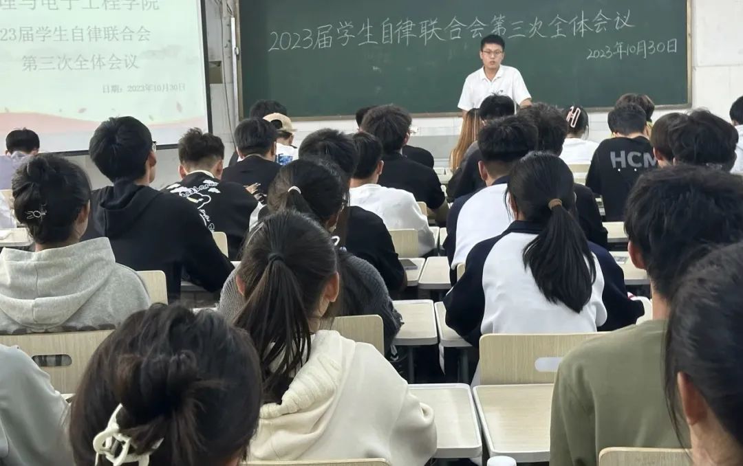 为总结上周学生自律联合会各部门的工作成果和明确下周工作方向,10月30日中午,beat365平台官方网站在综合实验楼W502教室召开2023届学生自律联合会第三次全体会议。学生自律联合会主席郭帅主持本次会议。2023届自律联合会全体成员参加。