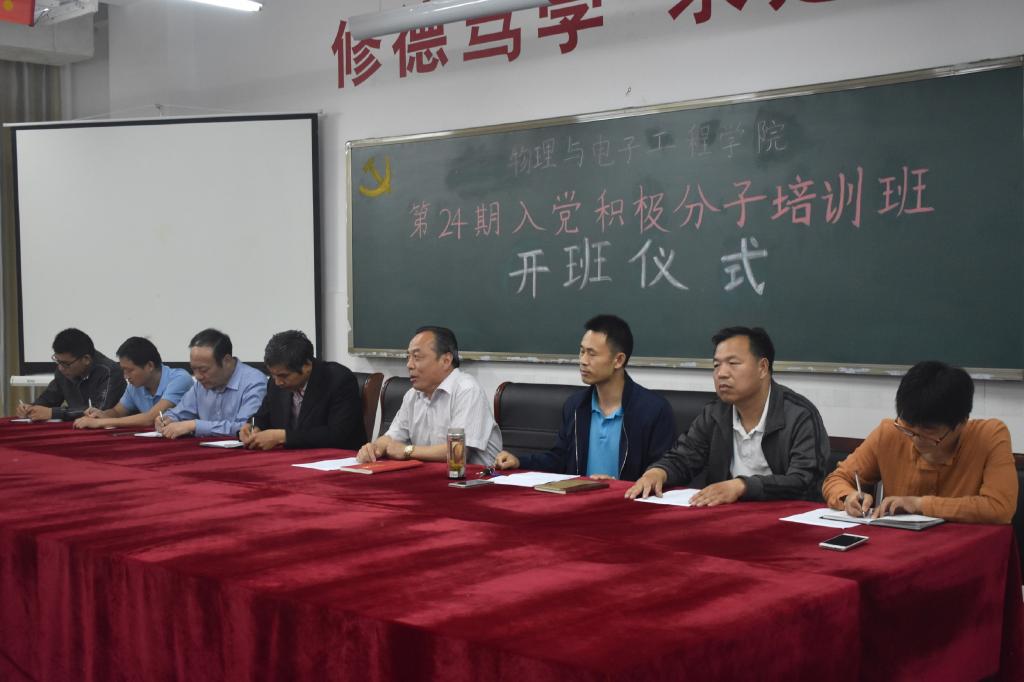 在综合实验楼W207举行了第24期入党积极分子培训班开班仪式,党委书记徐炳群、党委副书记兼院长徐兴磊、党委副书记吴瑞凡、副院长蒋继建、党政办公室主任贾建运、学生支部书记任雪莲、学生支部副书记张明华、辅导员庞志伟及所有入党积极分子共计50余人参加了开班仪式。