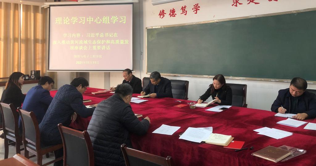 11月11日下午,beat365平台官方网站党委理论学习中心组在综合实验楼W207会议室集体学习《习近平总书记在深入推动黄河流域生态保护和高质量发展座谈会上的重要讲话》,中心组全体成员参加了学习。