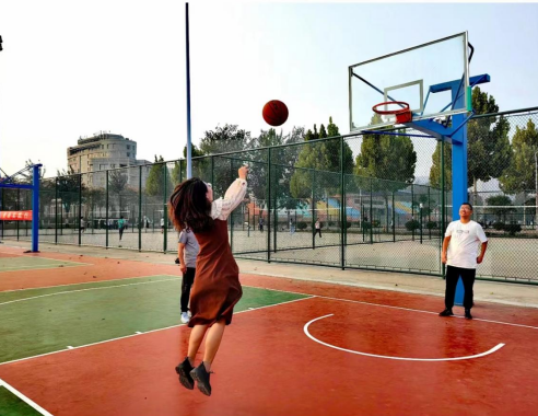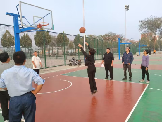 参赛老师们精神抖擞,信心满满。有的老师动作标准、姿势专业;有的老师目光专注,动作挥洒。大家采用适合的方式,施展投球技能,篮球在空中划出优美的弧线。观看的老师更是笑声鼎沸,一同为投篮老师呐喊助威,现场氛围热烈。