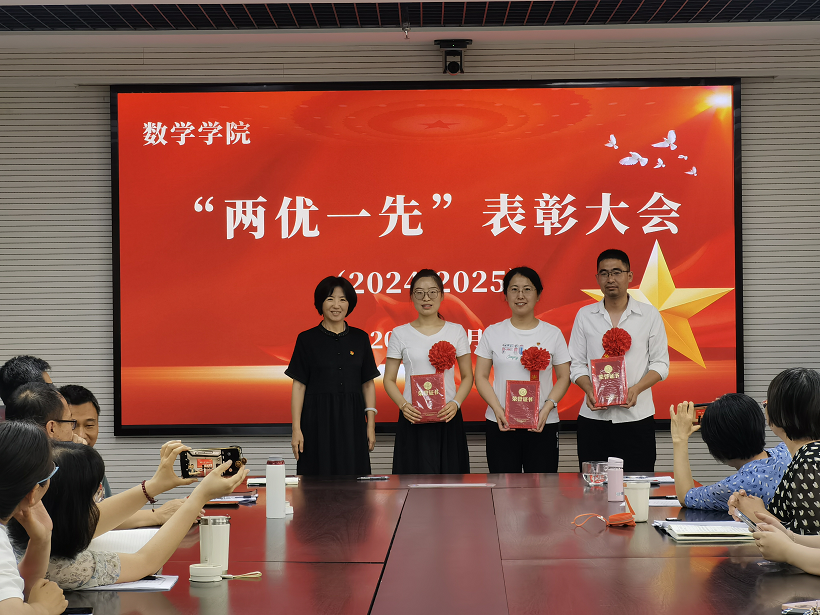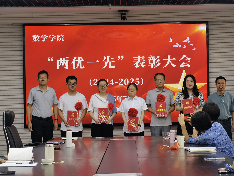 柴玉珍宣读了8858cc永利唯一官方网党委《关于表彰2024-2025年先进基层党组织、优秀共产党员和优秀党务工作者的决定》。学院党委决定,授予数学第一本科党支部“先进基层党组织”的荣誉称号,授予高犇等5名共产党员“优秀党务工作者”的荣誉称号;授予崔文红等8名共产党员“优秀共产党员”的荣誉称号。
