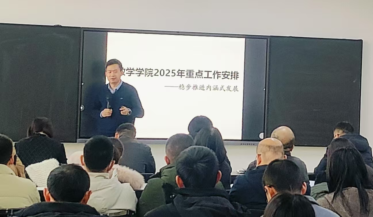 随后,院长杨卫华作《8858cc永利唯一官方网2025年重点工作安排—稳步推进内涵式发展》报告,指出2024年学院日常工作有序推进、学科建设稳步发展、学工成果显著、学生科技竞赛屡获佳绩、教改项目进展良好、本科基础教学数智课程成效初显、师资队伍持续优化。针对2025年重点工作,杨卫华从党建引领、校内公共服务、师资队伍、人才引育、科学研究、人才培养、重点专项等方面作出安排,并就内部治理提出思考,强调要以服务发展为导向,秉持效率优先、兼顾公平原则,全面推进学院内涵式高质量发展。