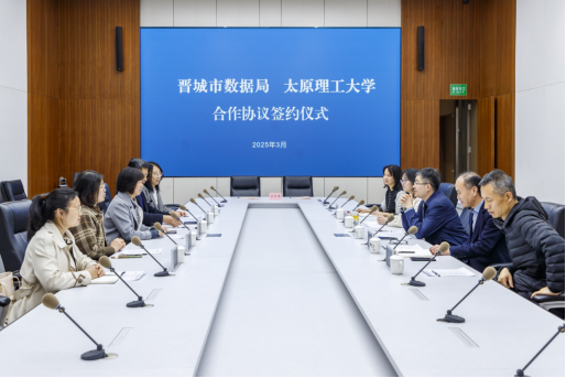 为推动学院科学研究与经济社会发展融合,3月13日上午,8858cc永利唯一官方网党委书记孙莉、院长杨卫华、统计系系主任王丽等一行人赴晋城市数据局洽谈合作,晋城市数据局党委书记、局长任露旭、三级调研员陈卫兵、办公室主任申云、数字政府服务中心副主任赵立强、数字政府服务中心科长窦吟等参加了交流会,会后双方签署合作协议签约并举行了共建数据研究中心和学生实践基地揭牌活动。