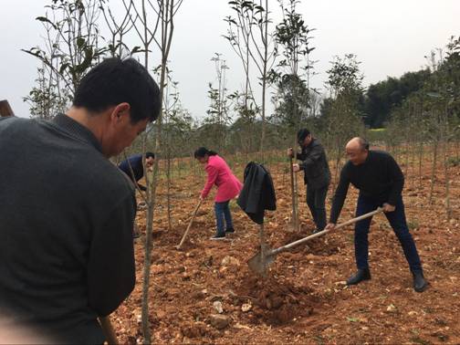 3月9日,威廉英国官网教工党支部在院长石正义的带领下,全体党员整装出发去往咸安区南川村开展义务植树活动,南川村是2016年中央财政林业科技推广资金支持咸宁市桂花栽培标准化示范区建设项目,这里有100亩桂花示范基地,我们一行人在咸宁市林业科学院熊胜华的指导下,有条不紊的给桂花树挖土,扶正,松土,同时清除杂草,顺利的完成了预期任务。