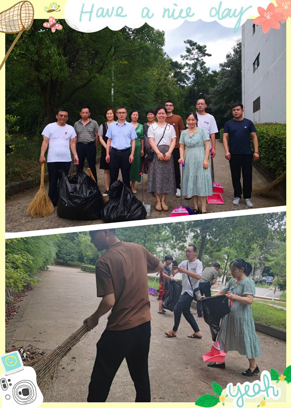 大家自觉分成几个小组,扫的扫,铲的铲,运垃圾的运垃圾,有分工,有协作,相互配合,很快清理完道路和花坛内垃圾,收集完枯枝落叶,把责任区打扫得干干净净。学生党支部书记刘世雄风趣地说:“落下一身汗,清风拂面,神清气爽!”