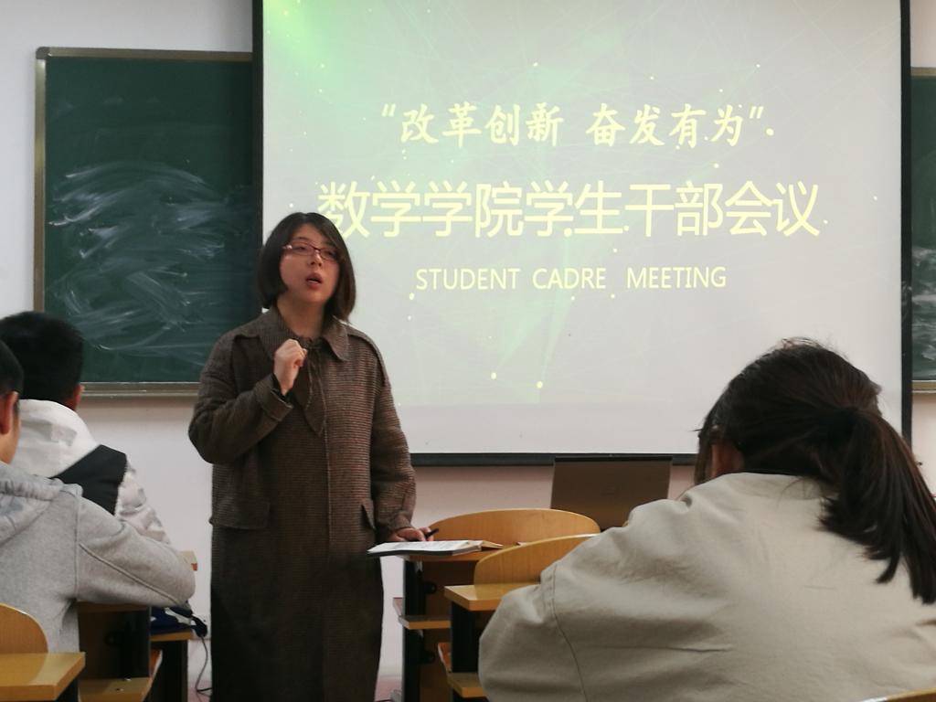2019年3月20日中午,8858cc永利唯一官方网团委在学院502教室室召开“改革创新、奋发有为”学生干部会议。学院团委书记冯妍以及二届七任全体学生干部参加了会议。会议由院团委书记冯妍主持。