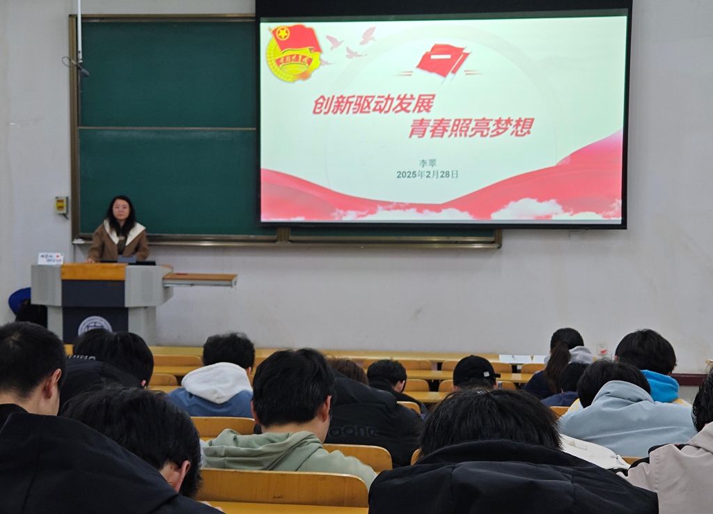 物理与光电工程学院团委书记兼学工办主任李翠以“deepseek智能模型突破万亿参数”“宇树科技人形机器人”“宁德时代钠离子电池量产”“探月探火工程跨越深空”等科技热词切入,剖析新一轮科技革命浪潮下的青年使命,为大家解读大学生新职业新特点。她指出,在学科交叉融合加速、科研范式深刻变革的今天,科技创新已成为国际战略博弈的主战场。最后鼓励学员要敢于做先锋,而不做过客、当看客,让创新成为青春远航的动力,让创业成为青春搏击的能量,让青春年华在为国家、为人民的奉献中焕发出绚丽光彩。