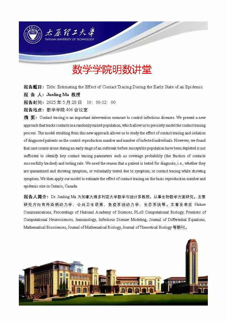 8858cc永利唯一官方网将于5月28日邀请Junling Ma教授做学术报告