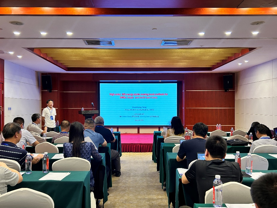 南昌航空大学副校长汤华中教授讲解了针对浅水方程(SWE)的高阶精确均衡(WB)能量稳定(ES)自适应移动网格有限差分方案。通过引入 SWEs 的重新表述,构建了两点能量保守(EC)通量,并证明了基于这种通量的高阶 EC 方案是 WB 的。自适应移动网格策略是通过迭代求解网格自适应函数的欧拉-拉格朗日方程来实现的。全离散方案是通过使用显式强稳定性保护三阶 Runge-Kutta 方法获得的。该方法为SWE的高精度数值算法研究提供了新的思路。