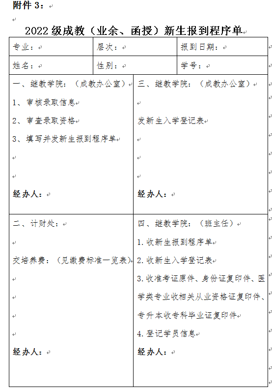 2.填写《2022年湖北省成人高校新生入学登记表》(见附件2);