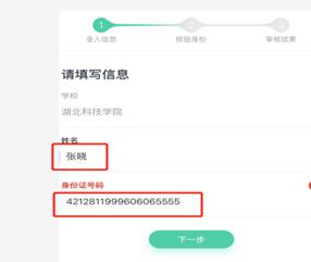 3、扫描后如下图所示,输入“姓名”和“身份证号码”,选择核验身份方式,务必点击“人脸识别”(请勿上传身份证明,上传了也无效)