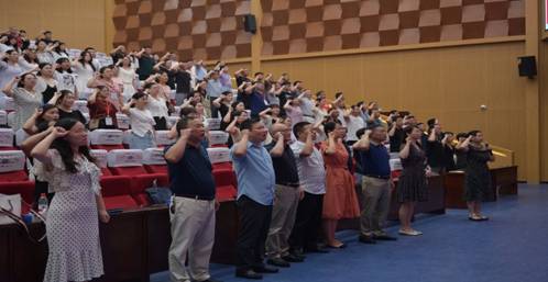 最后,全体参会人员庄严宣誓,重温教师誓词。